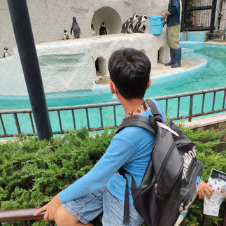 We went to Miyajima. Daadu's bones were scattered there. On Miyajima, we went to an aquarium. I saw a seal show and penguins.